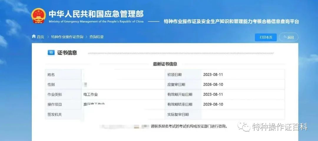 特種作業(yè)操作證由當?shù)貞?yīng)急管理局(原安監(jiān)局)頒發(fā),證書每3年一審,6年一換。證書全國通用,網(wǎng)上統(tǒng)一查詢網(wǎng)址,請認準查詢平臺唯一官方網(wǎng)址“https://cx.mem.gov.cn”。也可通過微信公眾號搜索“國家安全生產(chǎn)考試”查詢。